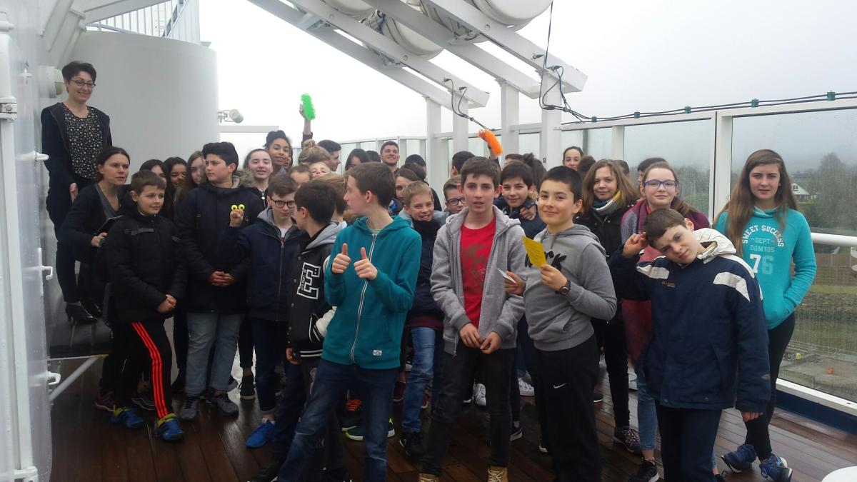 Après une nuit passée sur le bateau le "Pont-Aven", voici nos élèves et leurs 8 accompagnateurs passés à l'heure irlandaise.