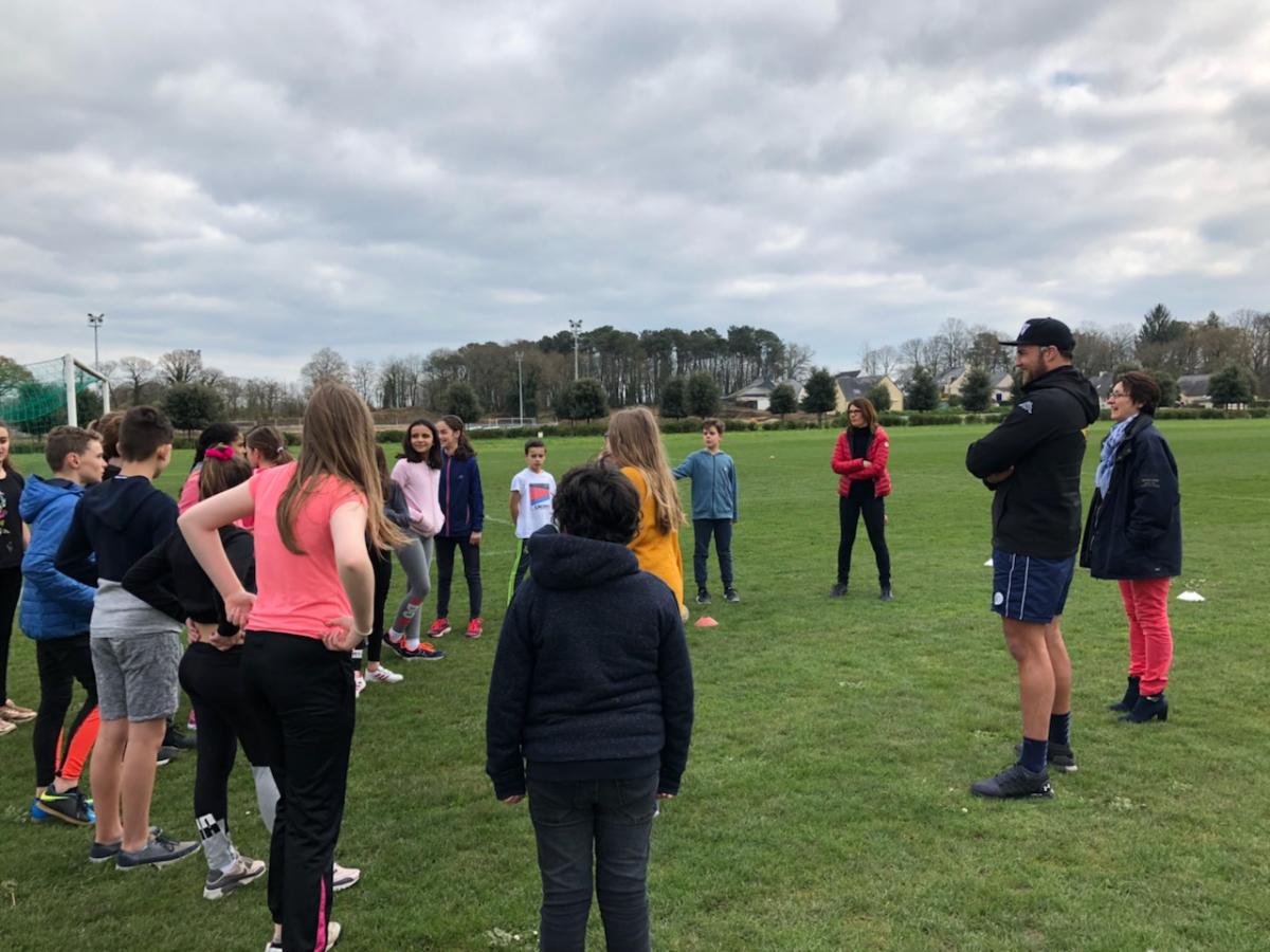 Pour donner vie à ce projet, elle a organisé la visite surprise de Johan de Bruin auprès de nos élèves: Rugbyman sud-africain, il est joueur du RCV (rugby cluc de Vannes) et coach de l'équipe espoirs.