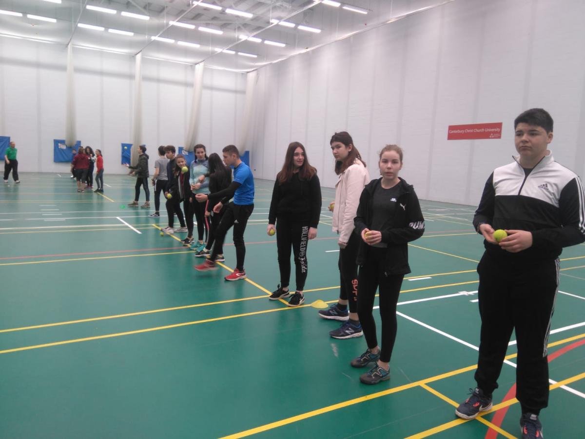Après une nuit dans les familles qui s'est très bien passée, les élèves s'essaient ce matin au criquet.