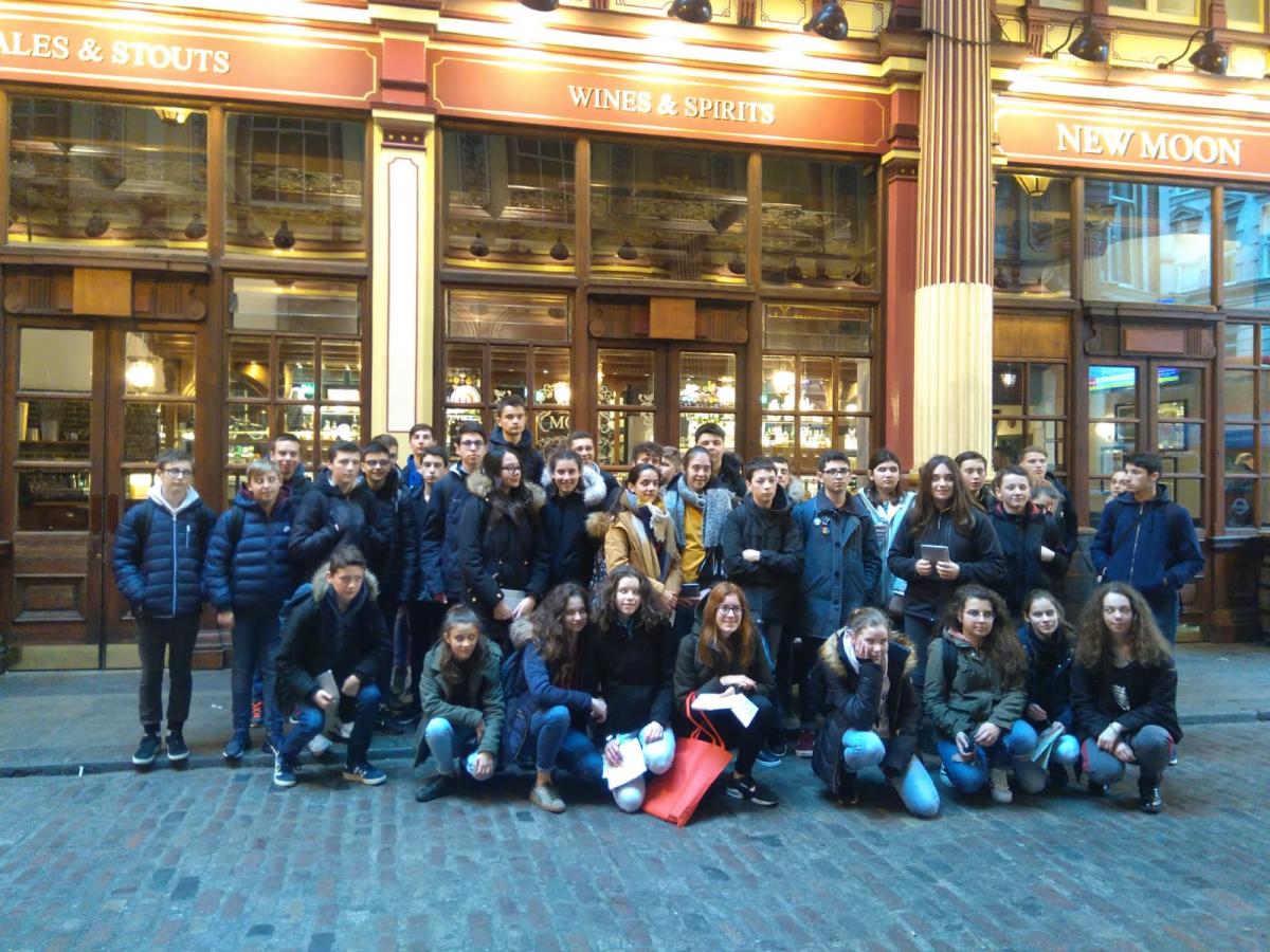 Les élèves partent ensuite découvrir le quartier de la City à Londres. ils prennet ici la pose dans "Leadenhall Market"