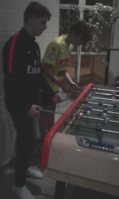 "After dinner activities" au centre d'hébergement de Calais, après un très bon repas sur place.