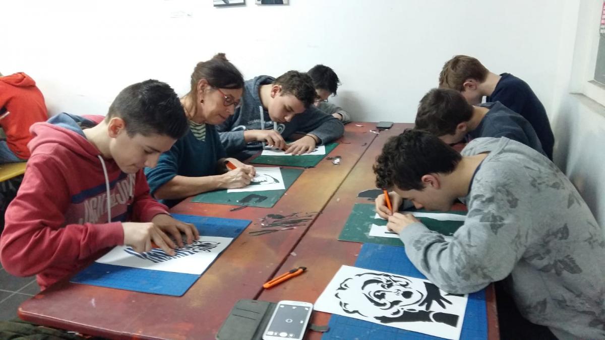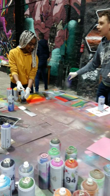 Les élèves et enseignants poursuivent la journée en s'essayant eux mêmes au street art. Le résultat est superbe!