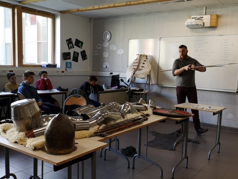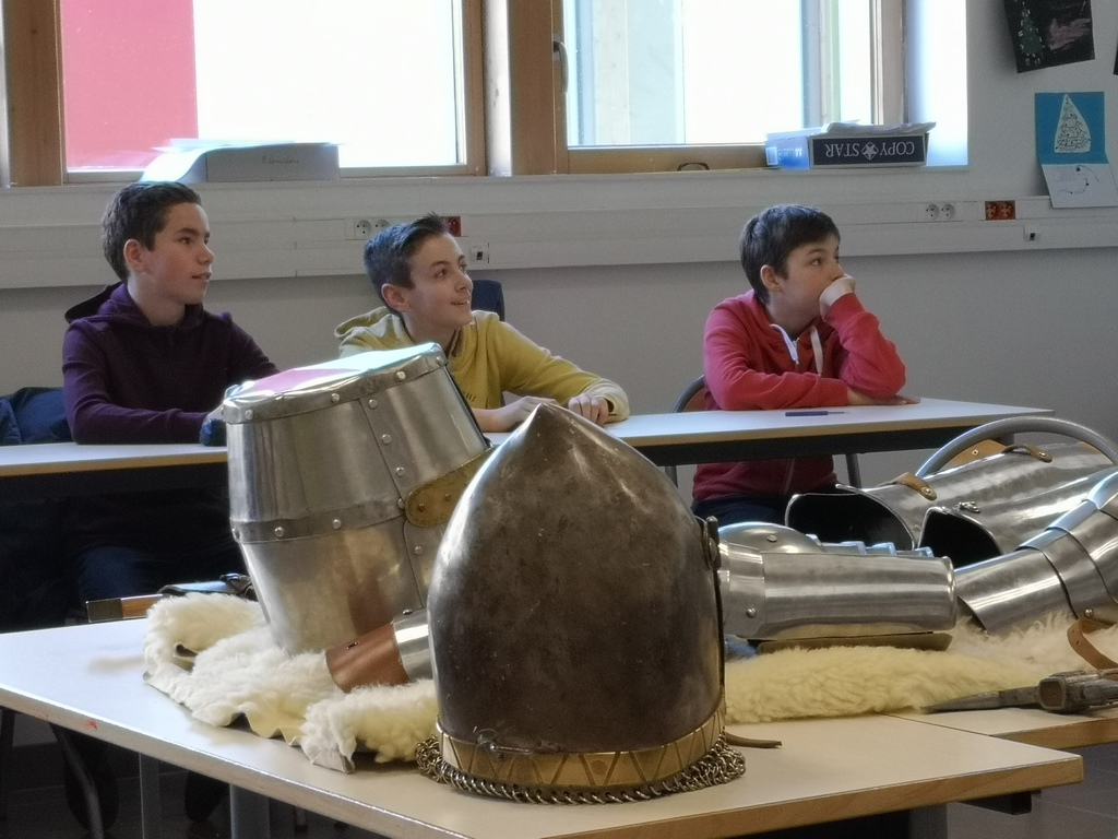 Des armes et armures caractéristiques du Moyen Age leur ont été présentées