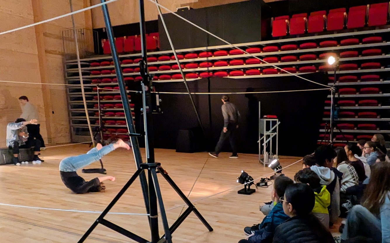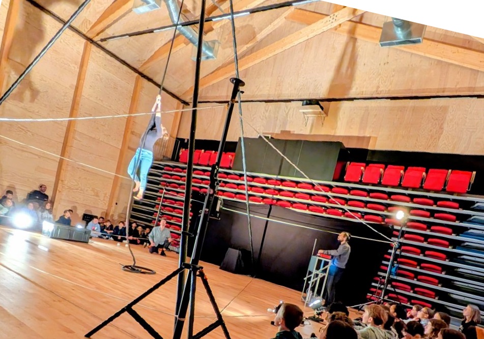 Vendredi 16 janvier 2026, nous sommes allés voir un spectacle qui s’intitule « Jolis Ravages ! ». Nous avons été invités par la mairie de Plescop, avec d’autres classes d’écoles primaires, pour voir ce spectacle en avant-première, présenté par la compagnie « Diaboliks ». C’était un spectacle qui n’était pas encore terminé, en cours de préparation et nous avons eu la chance d’assister à une répétition en public.