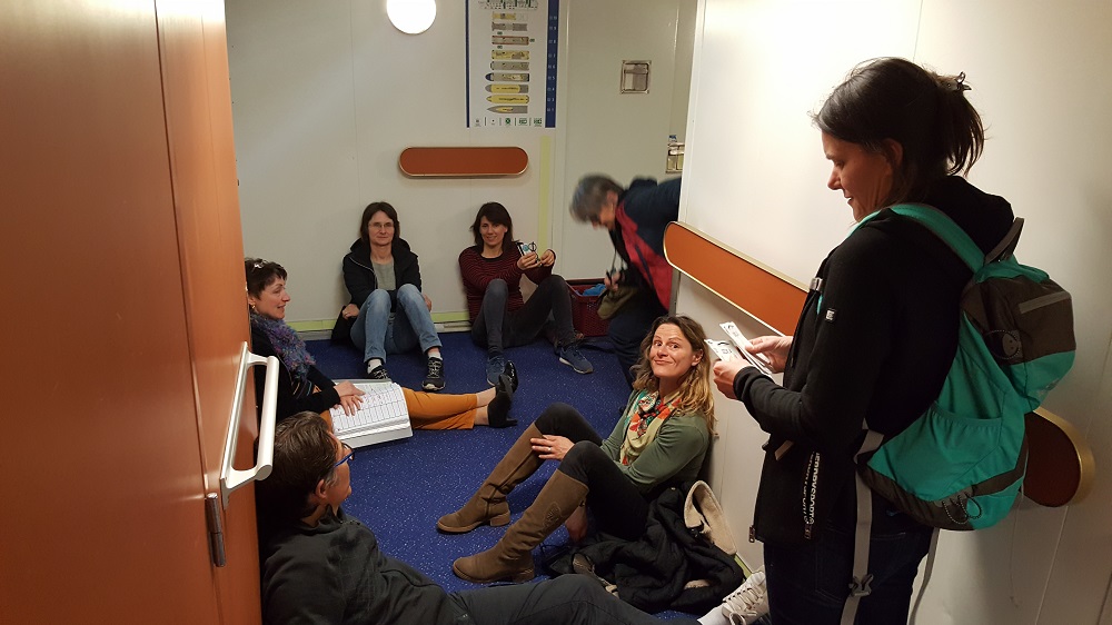 Le voyage en bateau s'est bien passé: repas à bord et nuit sous bonne garde!