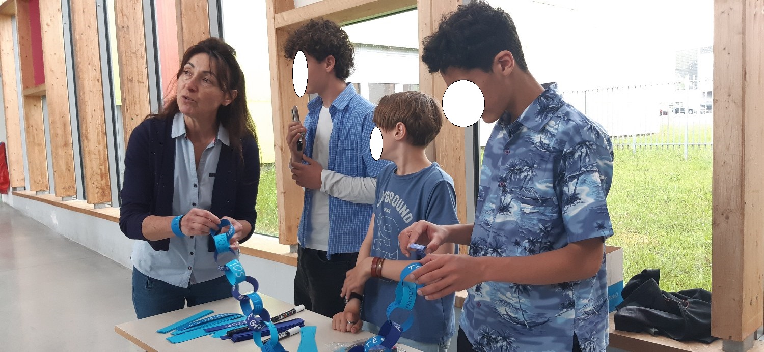 Unis par la couleur bleue du haut qu’ils portaient ce jour-là, le bleu étant la couleur choisie en France pour symboliser la lutte contre le harcèlement scolaire, ils ont pris part avec enthousiasme aux actions proposées par les élèves ambassadeurs ( 2 à 3 élèves volontaires par division pour soutenir les élèves intimidés et mener des actions de sensibilisation) et les membres de la cellule Bien-être du collège :