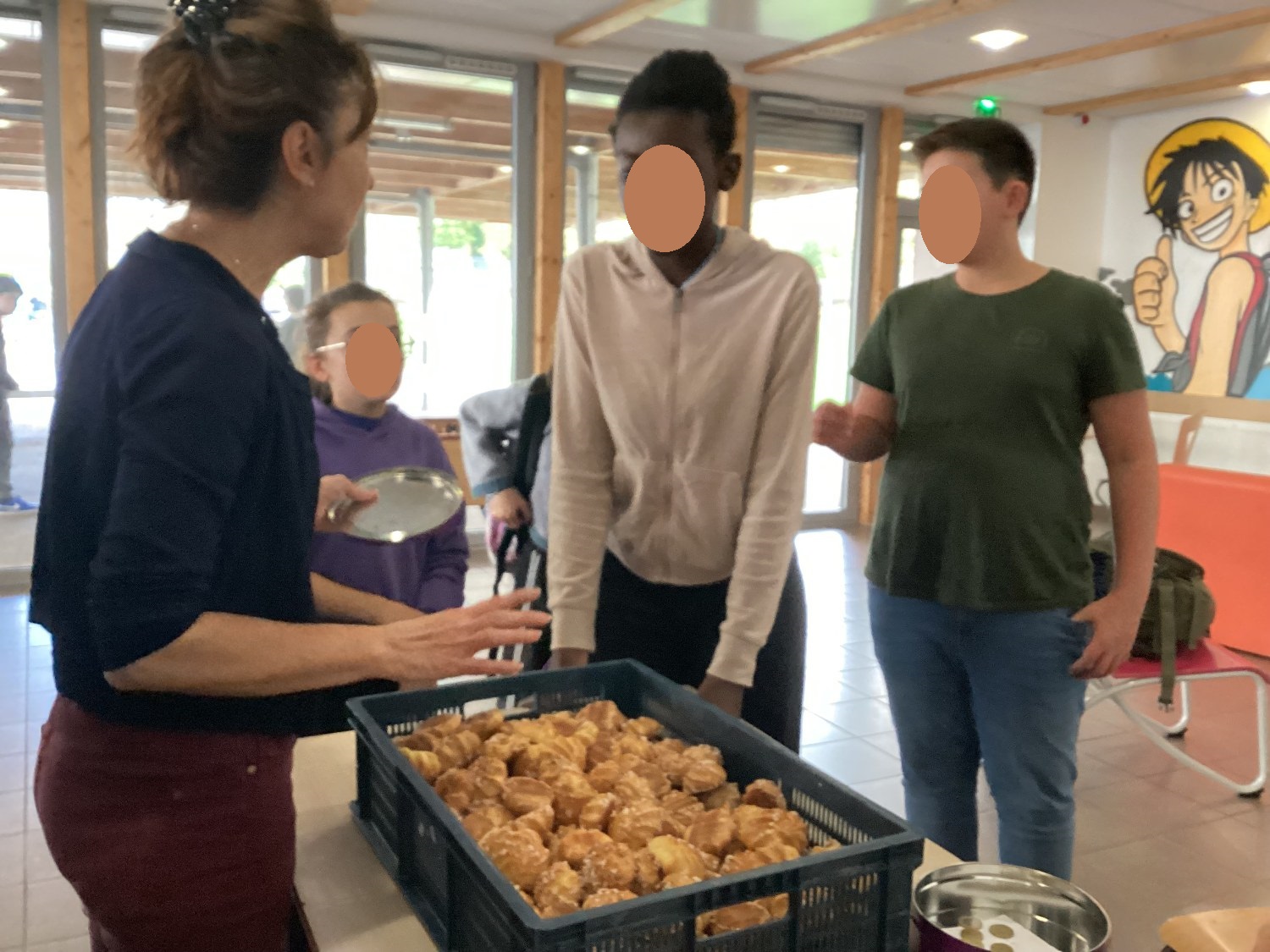 et vente de chouquettes à la récréation de l’après-midi (les bénéfices de cette vente seront ensuite reversés à une association locale de lutte contre le harcèlement scolaire).